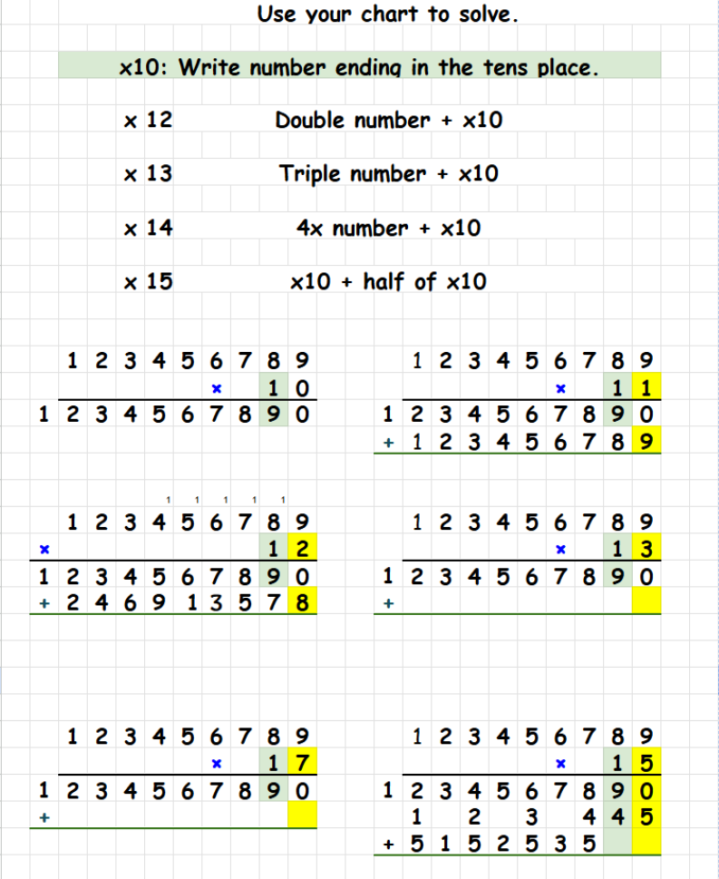 Multiples 1, 10, 5, 2, 9, 4