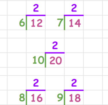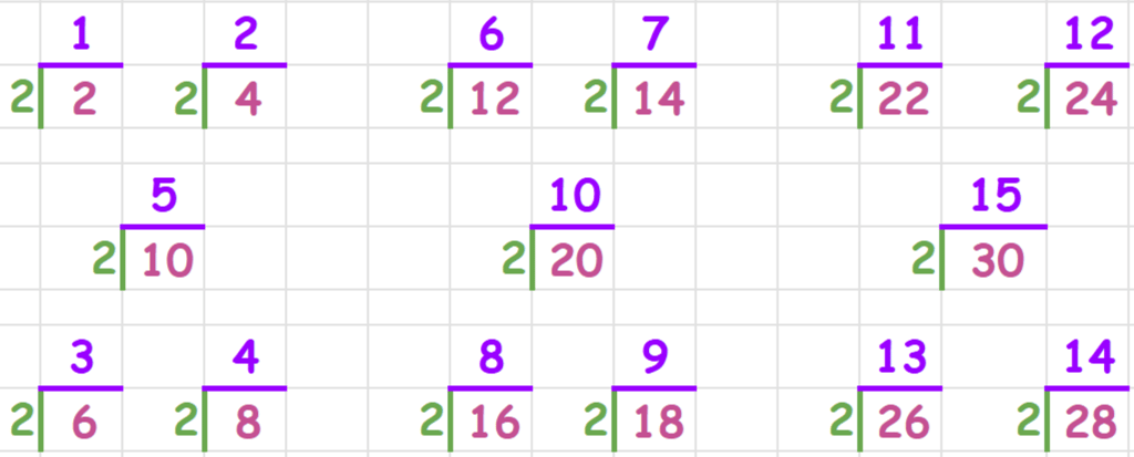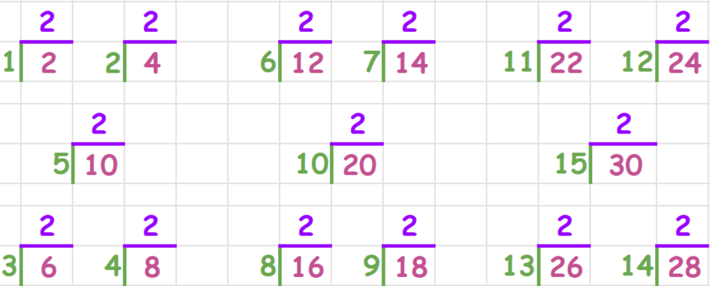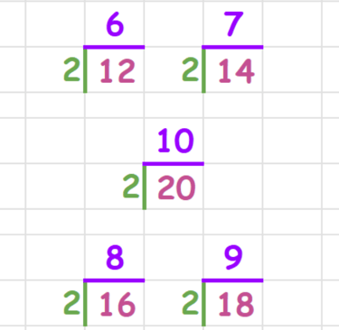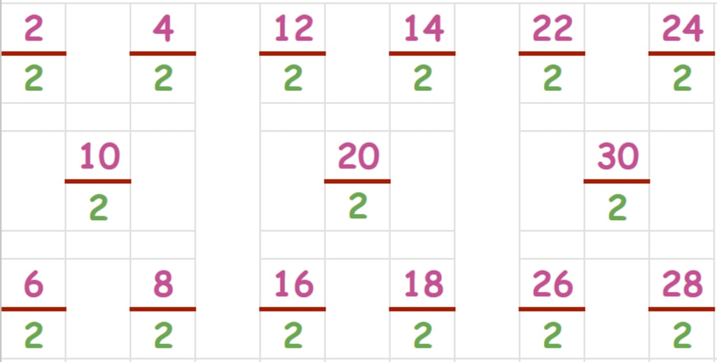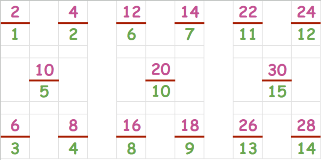 2/2 = 1 4/2 = 2