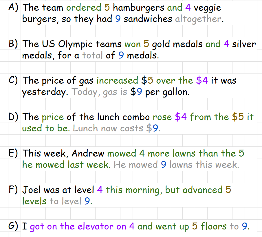 5 + 4 = 9